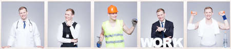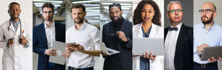 Collage set collection of people with various occupations professionals standing isolated on white background