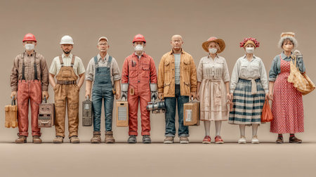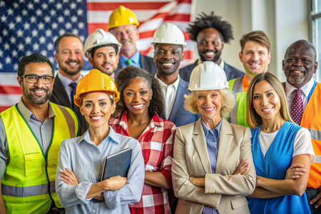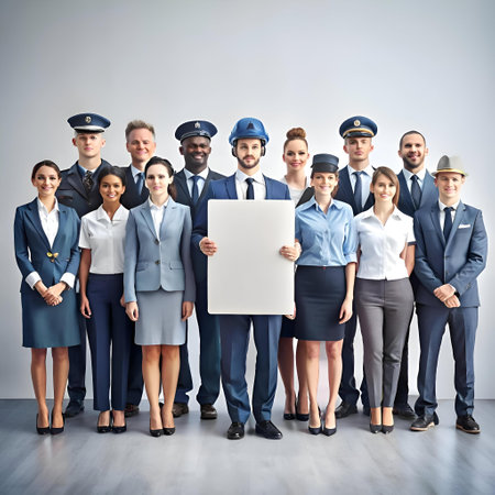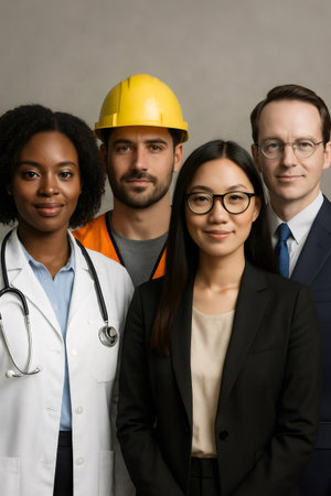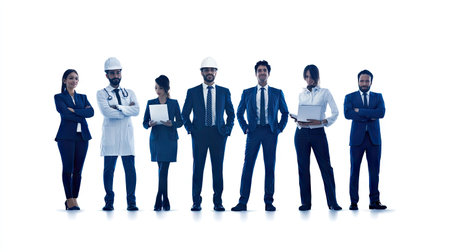 Group of diverse professionals from various industries and sectors standing together, symbolizing unity and collaboration