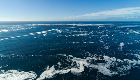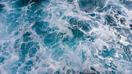 ocean surface foaming from waves, texture and shape of sea water, aerial view