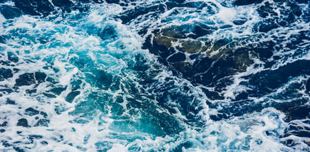 Texture Light blue surface of raging sea water with white foam and wave pattern