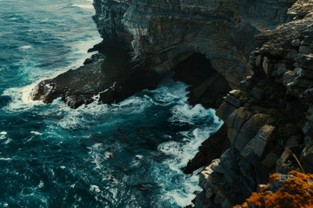 Stunning coastal cliffs with waves crashing against the rugged shoreline
