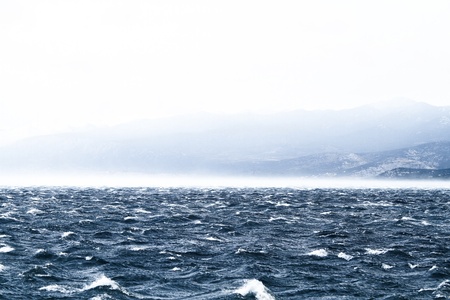 Raging sea with furious waves and fierce wind