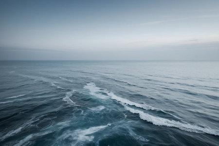 A breathtaking view of a vast ocean stretching to the horizon, under a clear blue sky. This image conveys serenity and tranquility, perfect for relaxation themes.