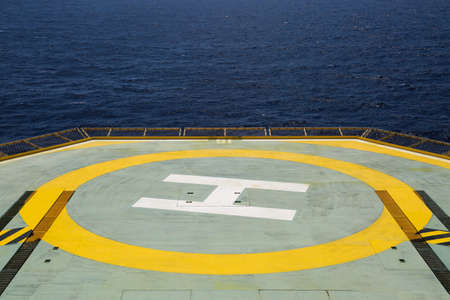 Helideck of oil and gas drilling rig in offshore industry, Helicopter landing area on construction platform in offshore of oil and gas industry or energy business for transfer passenger.