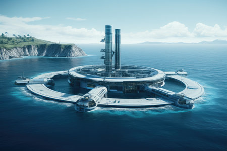 Futuristic environmentally friendly power plant of the future in the ocean, Revolutionizing Water Energy Systems with Full Automation. Efficiency and Comfort of Fully Automated Modern Water Energy Systems