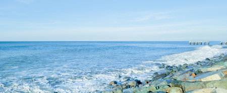 Beautiful sea and blue sky background. Panoramic view.