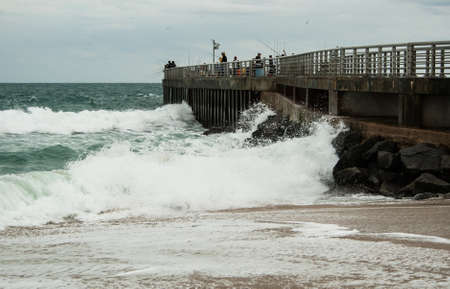 Wooden railing over the sea (Pesaro, Italy, Europe)