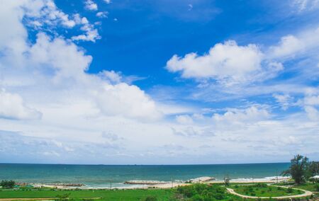 Ocean sea and sunny blue sky background.