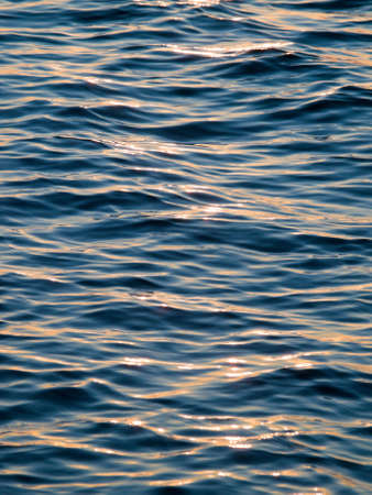 Surface showing close up of rippling blue water surface reflecting golden sunlight in soft focus. resolution use.