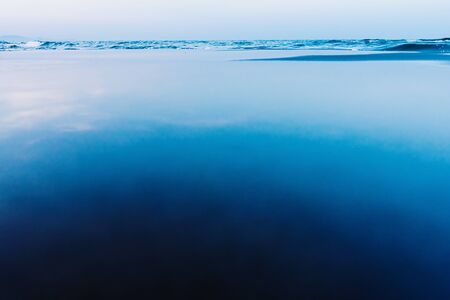Sea at sunset and at sunrise. Seascape. Narrow focus.