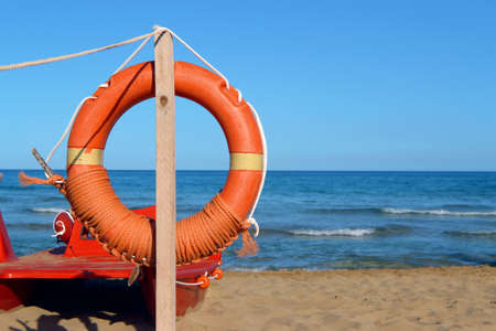 Lifeguard Burnside buoy at a sunny beach in Poland