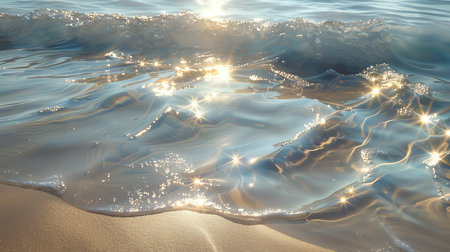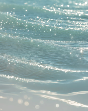 This stunning image captures shimmering ocean waves under radiant sunlight, creating a serene and tranquil atmosphere perfect for relaxation or meditation.