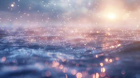 Stunning view of a sunset shimmering on ocean water, where soft waves create a serene atmosphere filled with sparkling light, reflecting nature