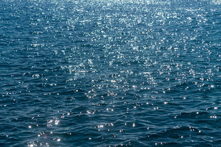 Sparkling Sunlight Reflections on Deep Blue Ocean Water Surface - Natural Light Bokeh Effect for Meditation and Relaxation. Nature background