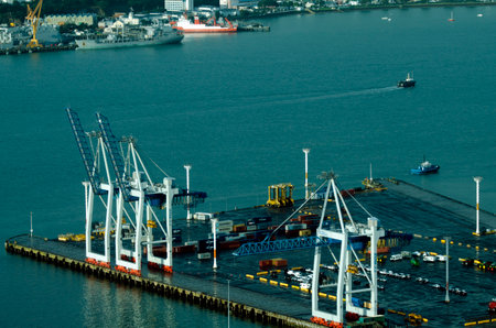 AUCKLAND,NZ - OCT 08:Container cranes on Bledisloe Wharf at Ports of Auckland on Oct 08 2013.It's New Zealand's largest commercial port, its turnover of more than NZ$20 billion per year