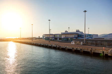 Various view of the coastline, piers and terminal during the sunrise & sunset. Indonesia, December, 2020