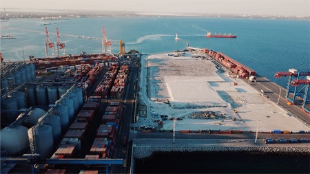 Sea port from a birds-eye view. Odessa, Ukraine