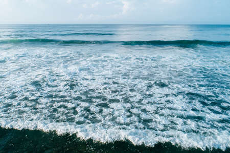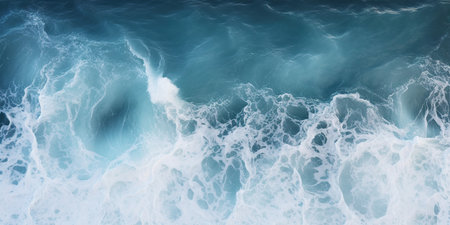 Aerial view to waves in ocean Splashing Waves. Blue clean wavy sea water. Seething waves with foam.
