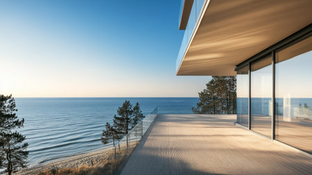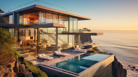 Modern home with sea view. AI generated