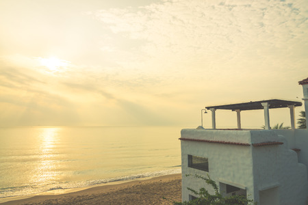 Sunset on the beach with a view of the sea and the house