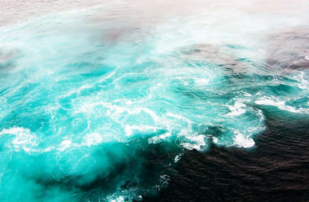 Texture Light blue surface of raging sea water with white foam and wave pattern