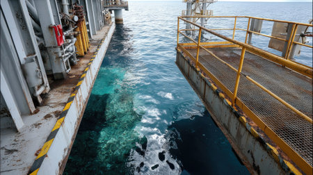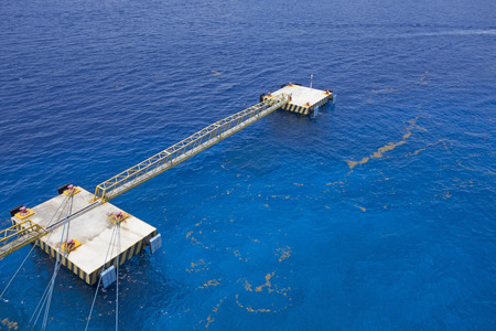 oil production platform and emergency boat platform on the sea
