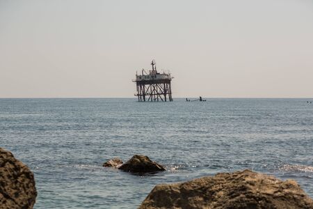 Abandoned oceanographic platform near Black Sea coast, Crimea.