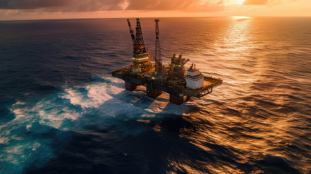 Aerial view offshore drilling rig at the offshore location during sunset. Generative Ai