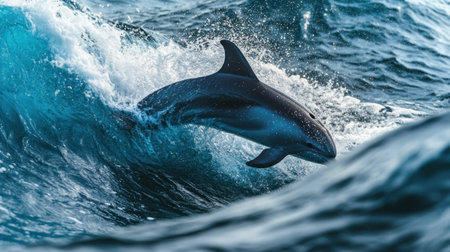 A stunning image capturing a dolphin gracefully leaping above ocean waves, showcasing the dynamic beauty of marine life in its natural habitat.