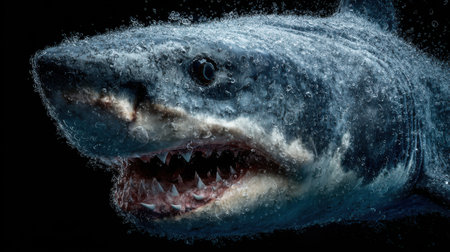 A shark in the water with its jaws wide open, ready to strike, Jaws wide open, ready to strike at any moment