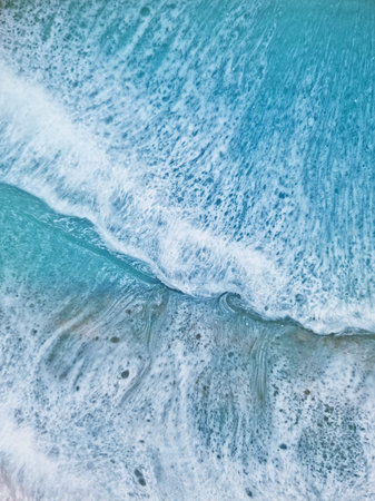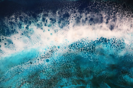 Top view on sea wave with white foam, ocean beach, epoxy resin minimalist art
