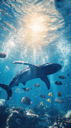 An enchanting underwater scene showcasing vibrant tropical fish and colorful coral reefs in crystal clear water. Ideal for nature lovers and aquatic enthusiasts.