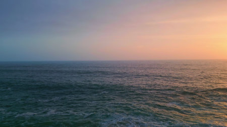 Ocean horizon with calm waves at sunset, tranquil nature scene