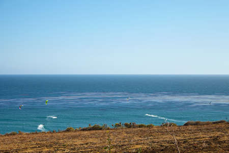 Kitesurfing on a very choppy sea in Southern California Malibu