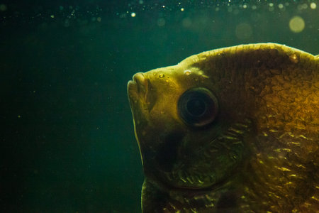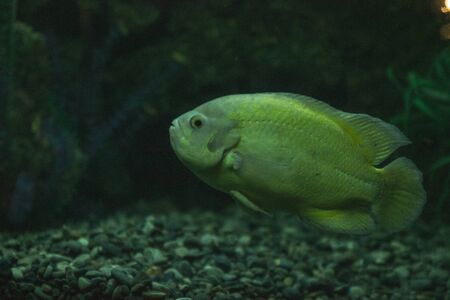 Dreamlike underwater world in an aquarium. Large freshwater fish swim in the aquarium.