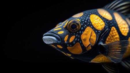 Decorative black and yellow aquarium fish swimming in an aquarium