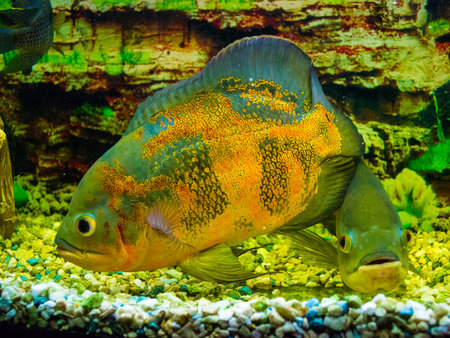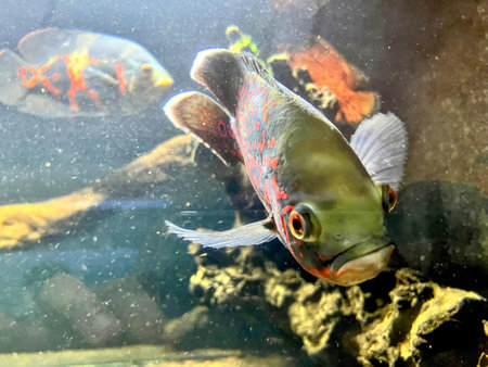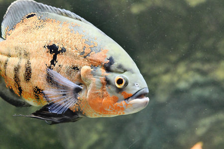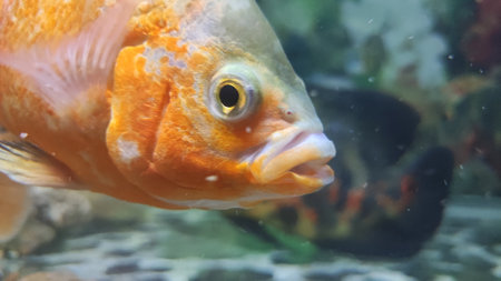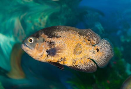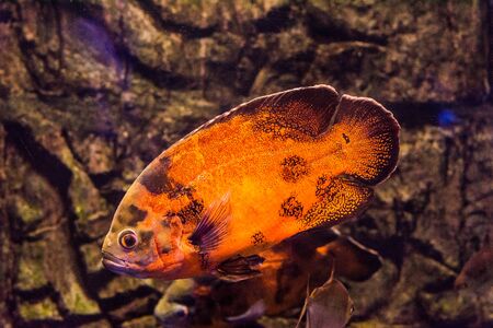 Predatory fish close-up of the species Astronotus Okellatus, inhabitant of the southern tributaries of the Amazon
