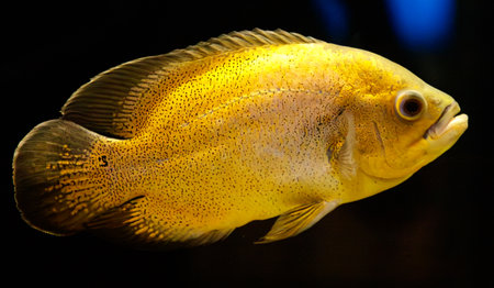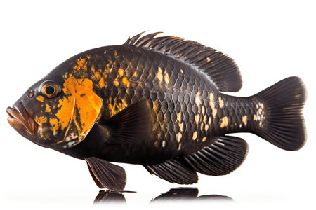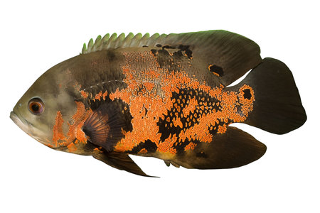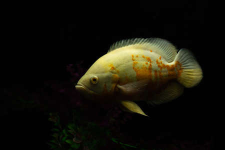 Astronotus ocellatus fish also known as Oscar fish isolated on black background.