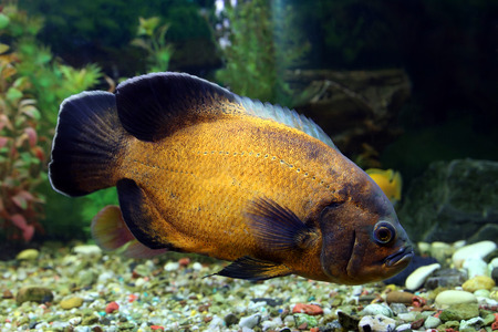 Tropical fish latin name Astronotus ocellatus, recorded in aquarium