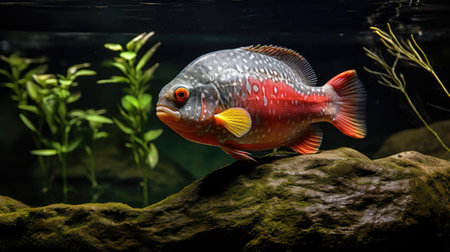 fish swimming in water, Cichlasoma, Heros severum var Red Pearl. Cichlasoma is a genus of freshwater fish in the cichlid family. including cichlids from North America