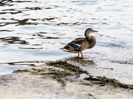 Female mallard duck floating on the lake in Poland