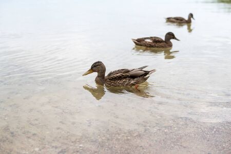 ducks swimming in the pond, closeup