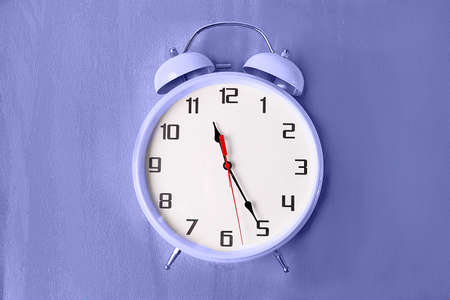 Retro style color alarm clock toned in Very Peri color - color of the year 2022