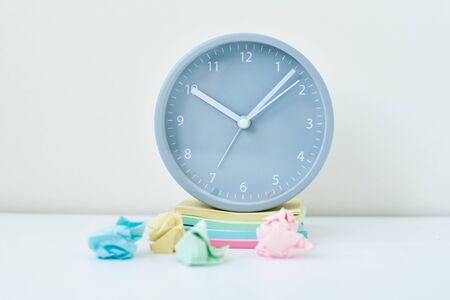 Alarm clock on the table. Concept of time management and deadline