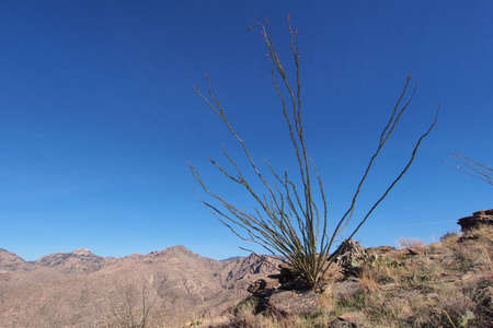 Ocotillo, Fouquieria splendens, and assorted other cacti on the King Canyon Trail in Saguaro National Park near Tucson, Arizona.