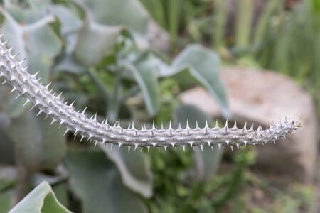 Thorny Succulent Stems in Sunlit Greenhouse Close-Up