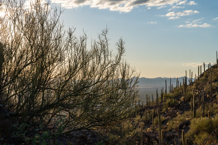 Desert landscape on the Blacketts Ridge Trail in Saguaro National Park near Tucson, Arizona.