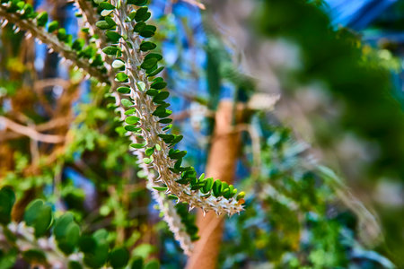 Thorny Plant with Vibrant Leaves in Sunlit Garden Close-Up