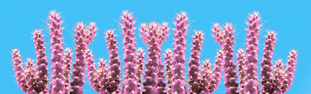 Cacti colorful fashionable mood. Trendy tropical Neon Cactus plant on Blue Color background. Fashion Minimal Art Concept. Creative Style.