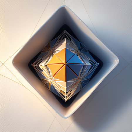 A stunning crystal structure like firefly resin features a geometric design with glowing highlights, sparkling wonder and creativity.